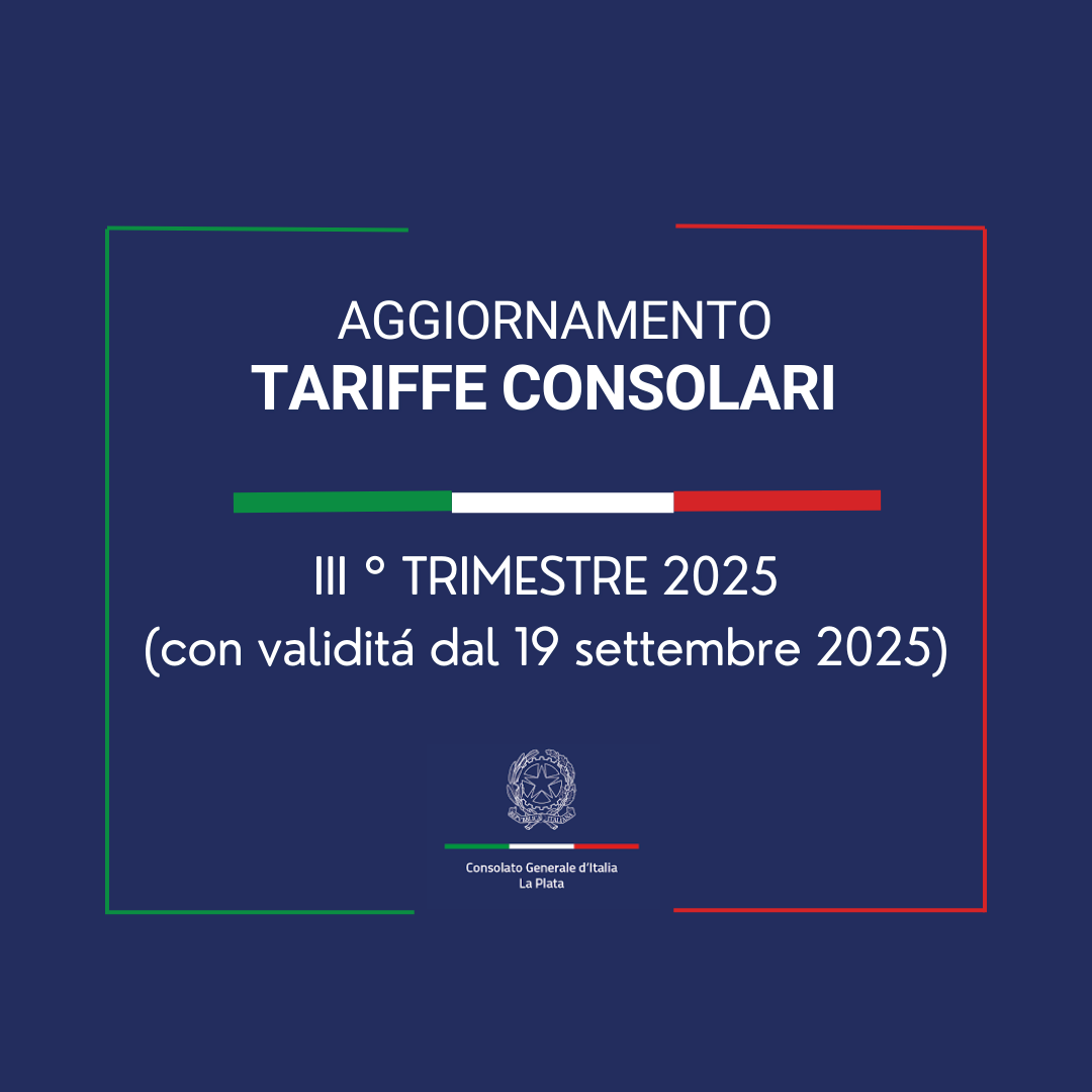 AGGIORNAMENTO TARIFFE CONSOLARI III° TRIMESTRE 2025